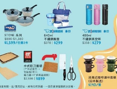 2015-07-13 微信红包微币天天送,关注微信号: hkziyouxing (长按左边红色字复制)获取福利和最新香港购物优惠折扣信息香港打折:一田百货夏休户外用品及精选厨具购买优惠(至15年7月20日)