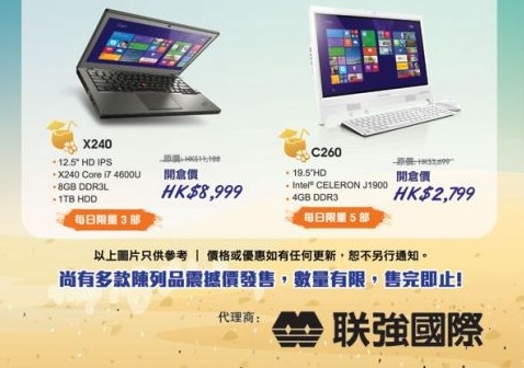 香港打折:联想LENOVO夏日开仓大减价购物优惠(至15年7月18日)