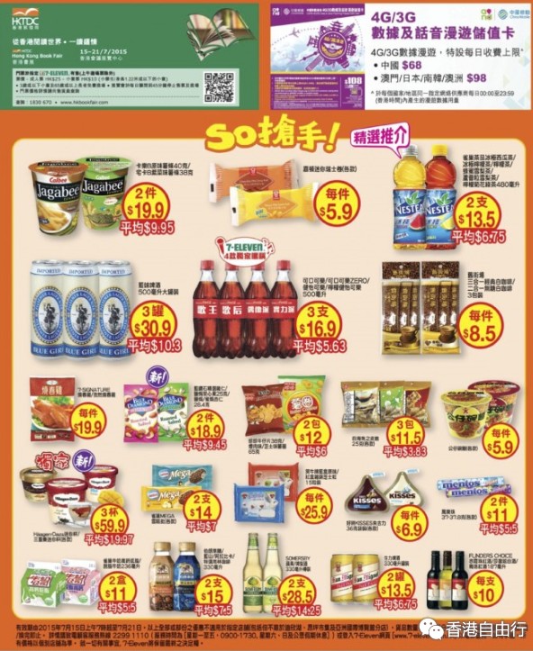 2015-07-15 微信红包微币天天送,关注微信号: hkziyouxing (长按左边红色字复制)获取福利和最新香港购物优惠折扣信息香港打折:7-Eleven本周抢手货购物优惠(15年7月15至21日)